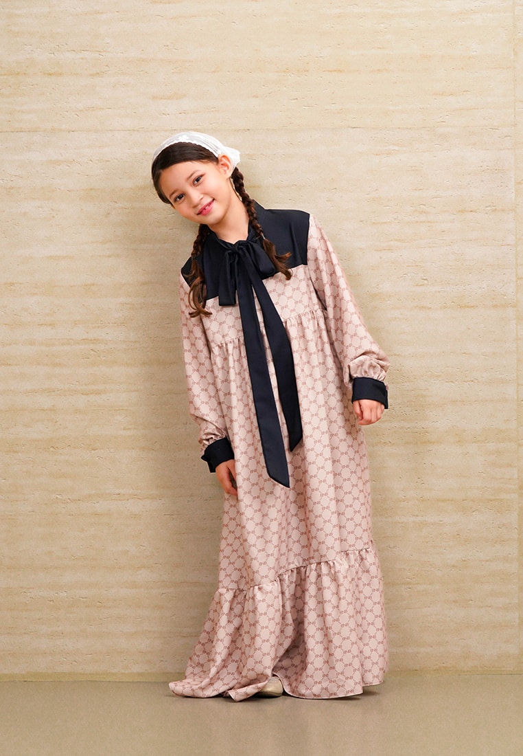 A playful version of the adult silhouette, featuring tiered layers and a matching bow tie at the neck. Uses child-friendly Premium Crepe that is gentle on the skin and allows for active movement during celebrations.