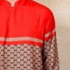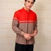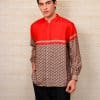 A sharp long-sleeved shirt with a mandarin collar and a contrasting solid-colored yoke across the chest and shoulders.