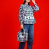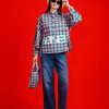 Color : Blue houndstooth , Checkered Pink, Curvy Green